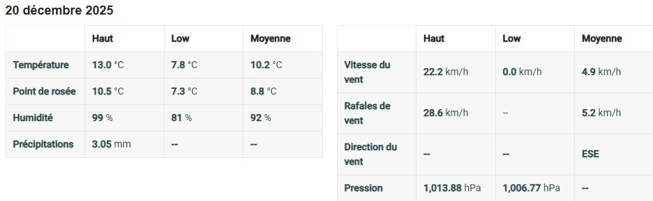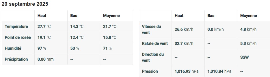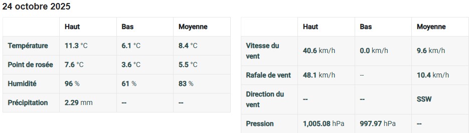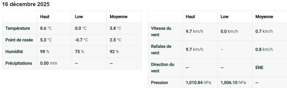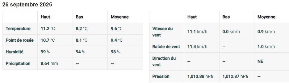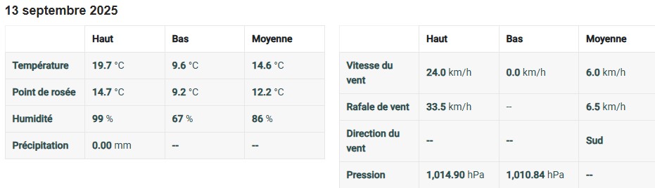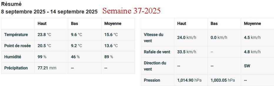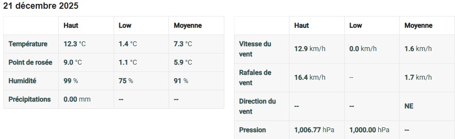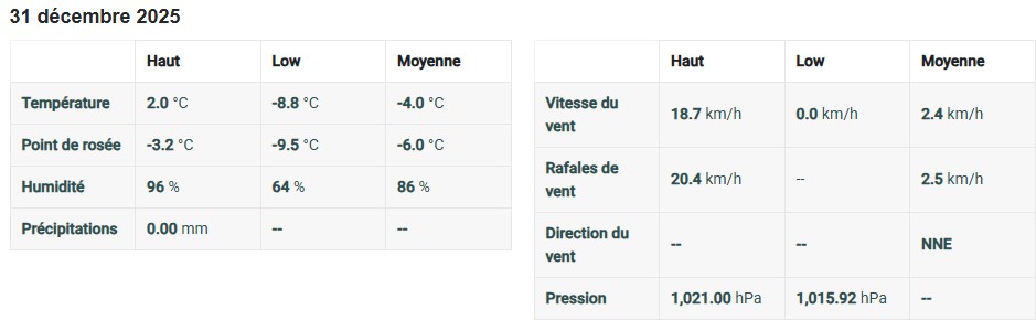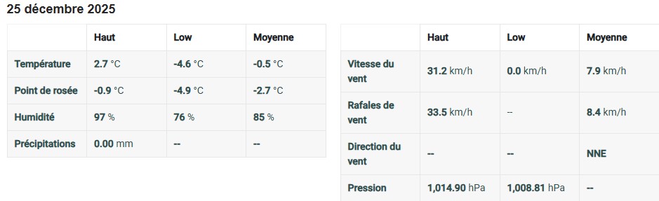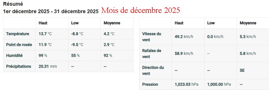 Le temps qu'il a fait à Uzemain en 2025 !!!!!