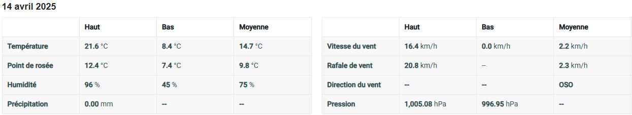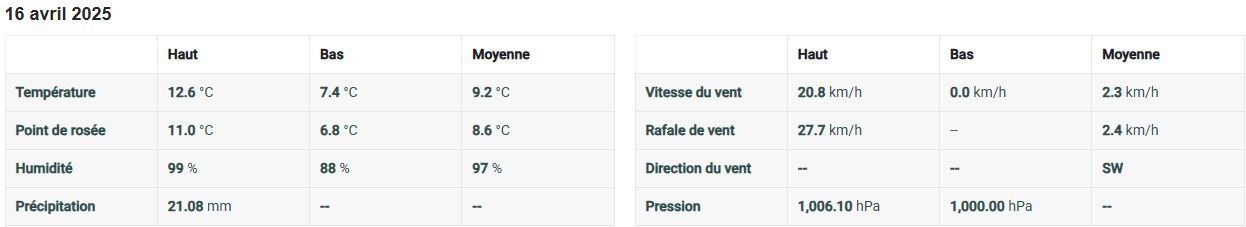 Le temps qu'il a fait à Uzemain en 2025 !!!!!
