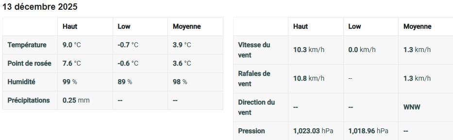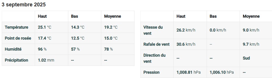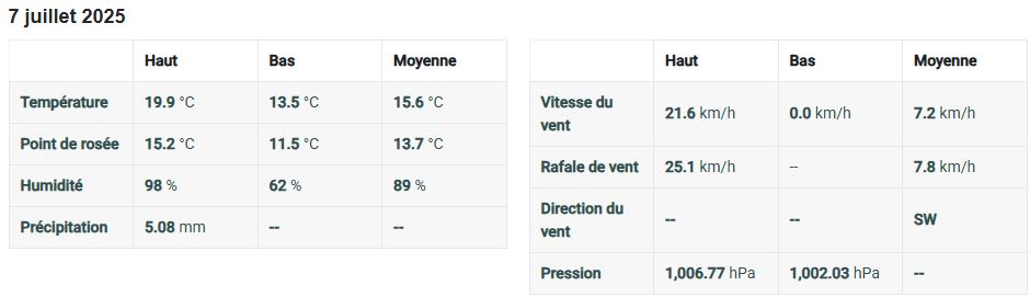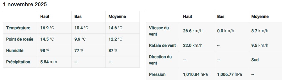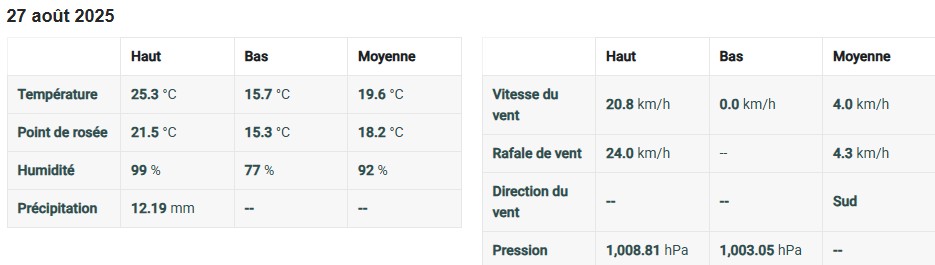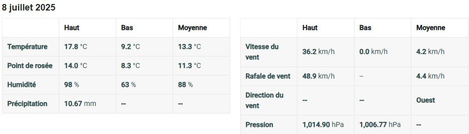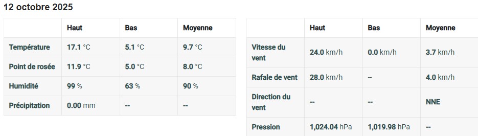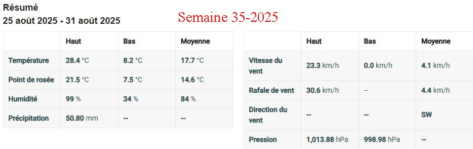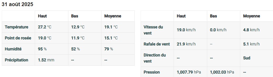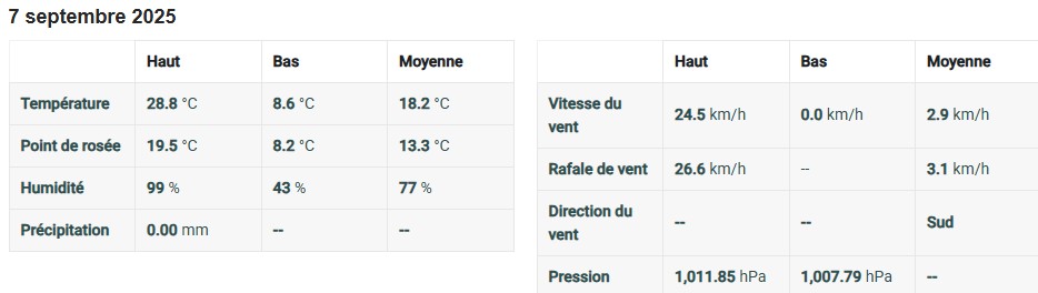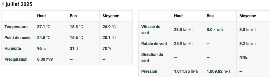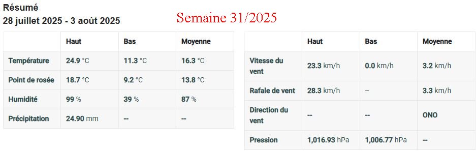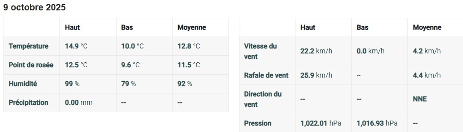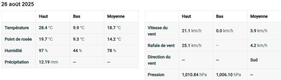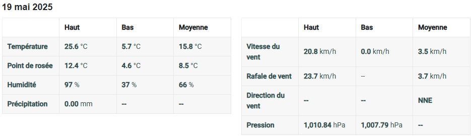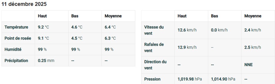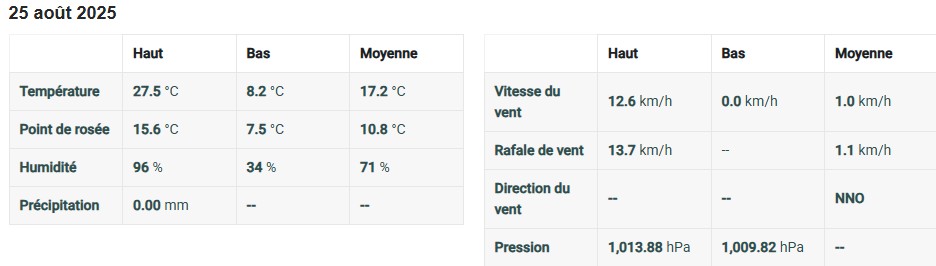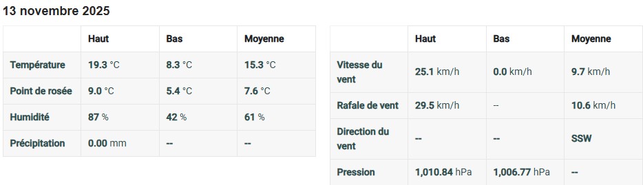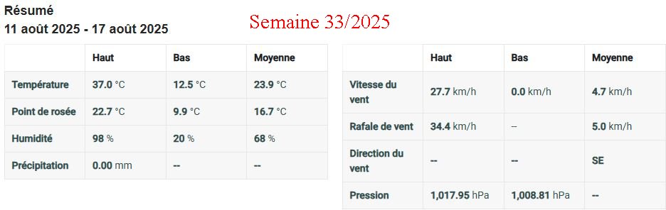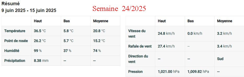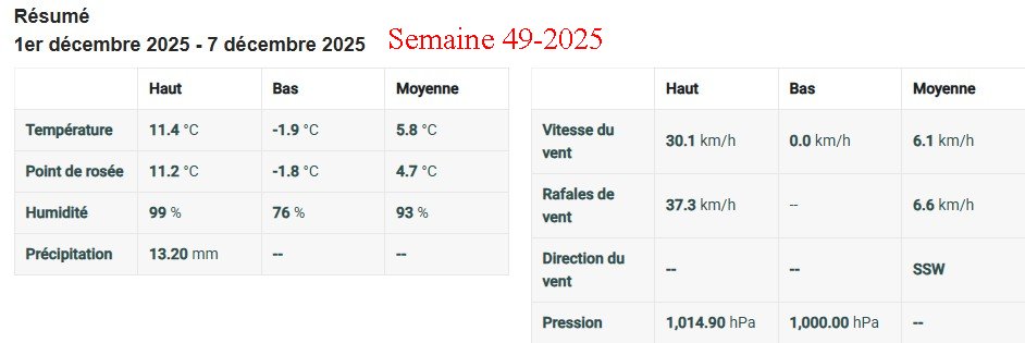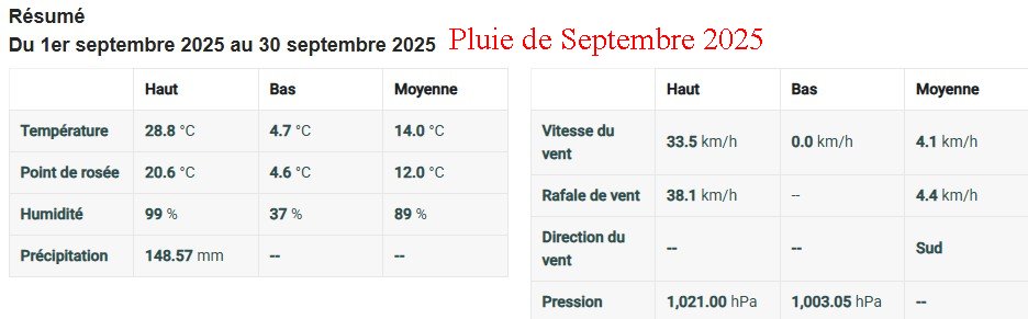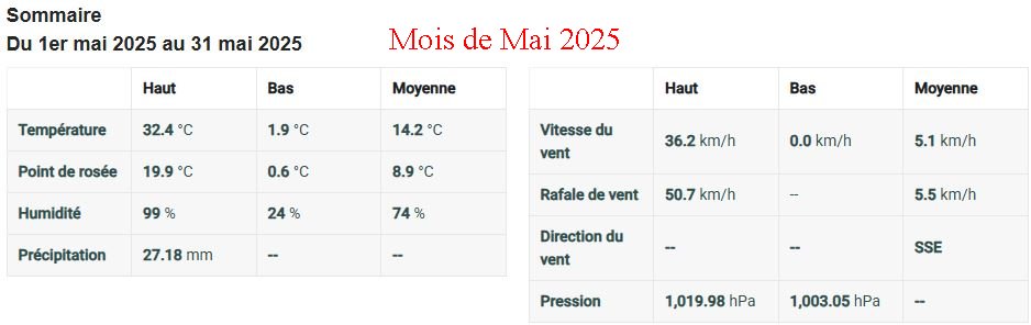 Le temps qu'il a fait à Uzemain en 2025 !!!!!