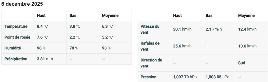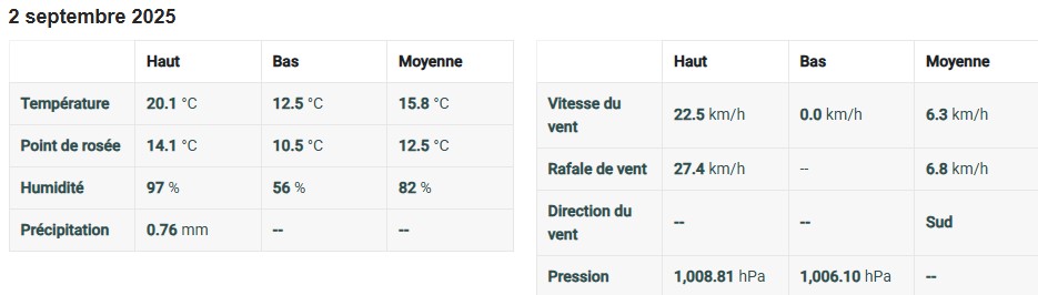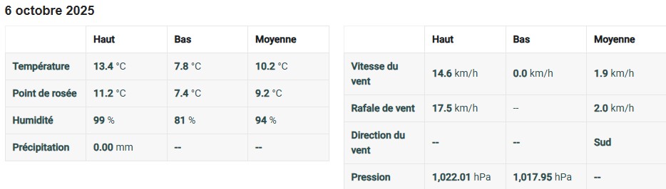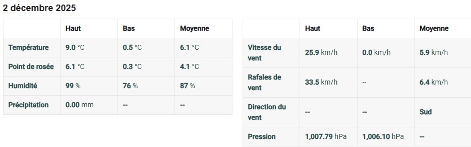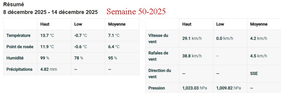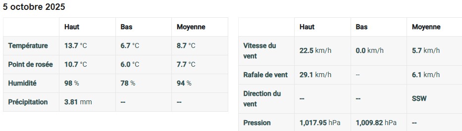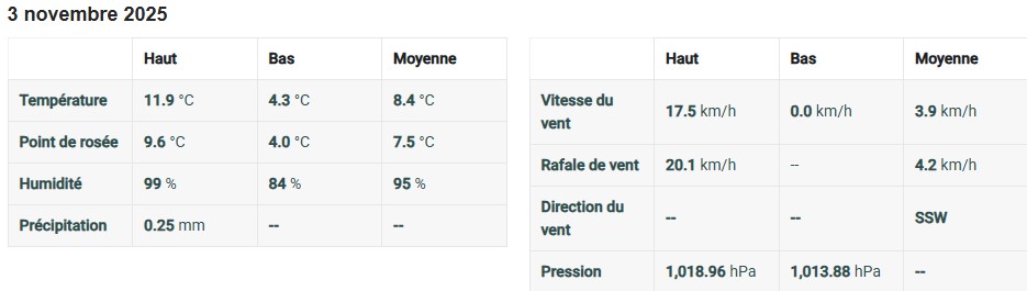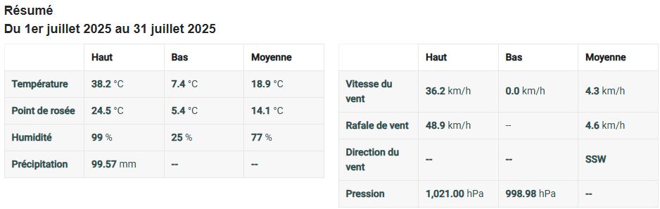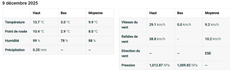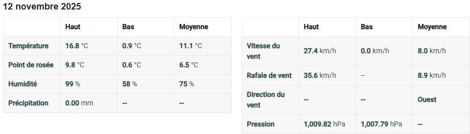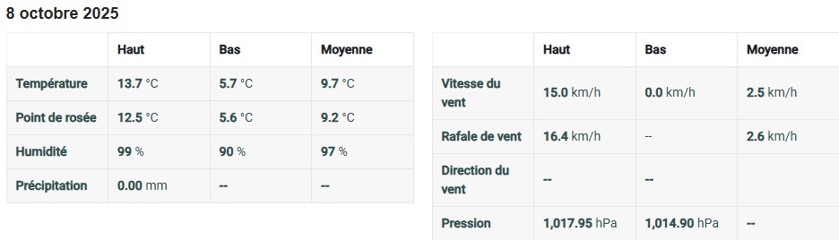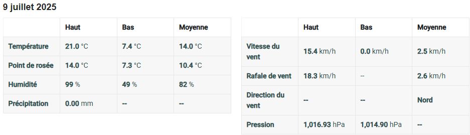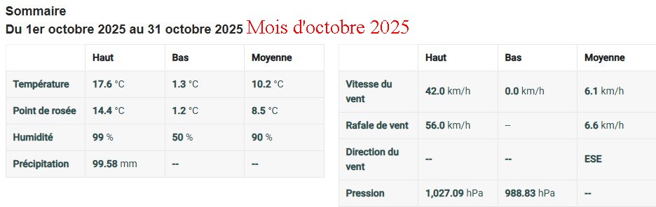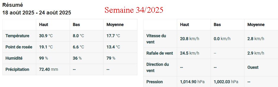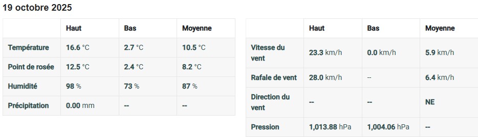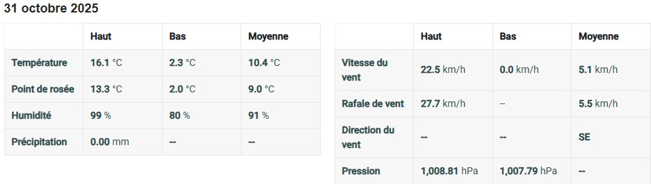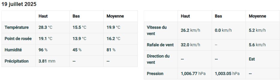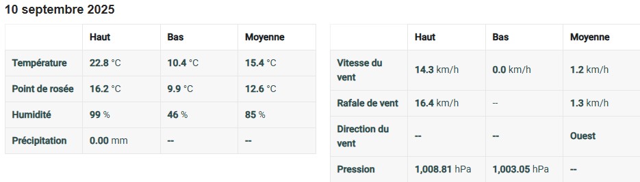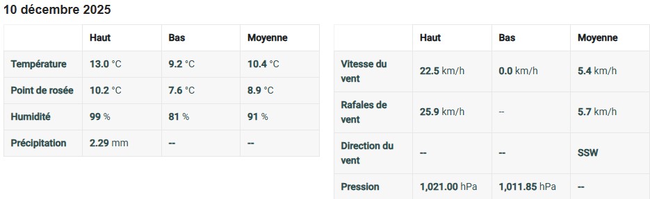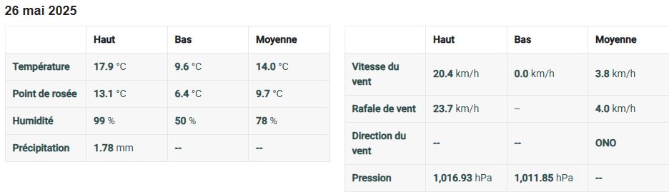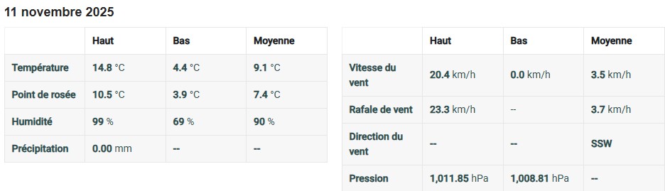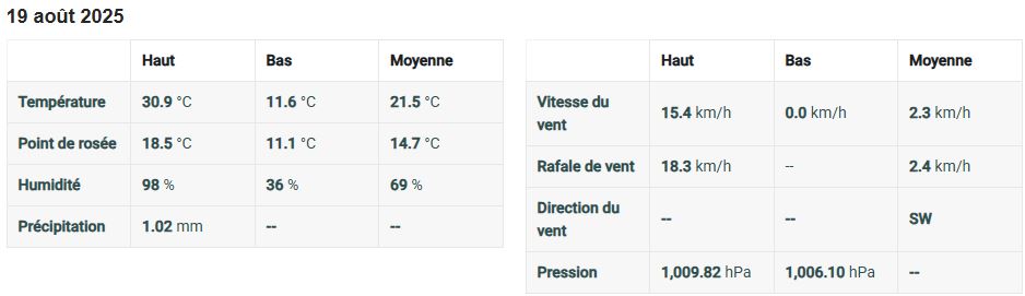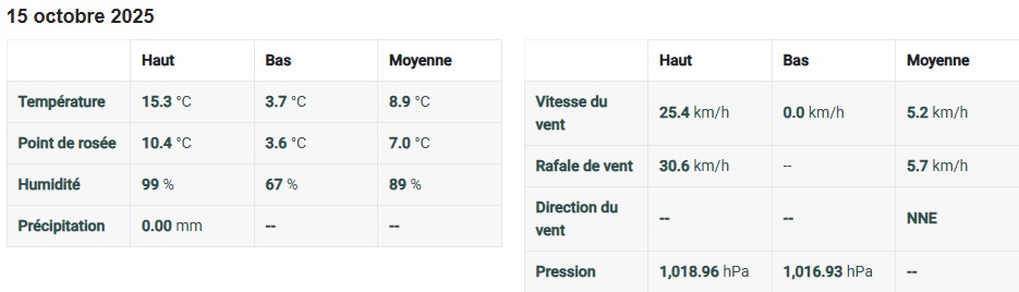 Le temps qu'il a fait à Uzemain en 2025 !!!!!
