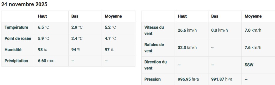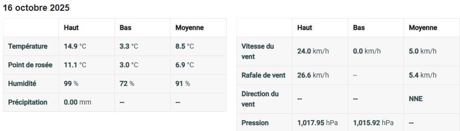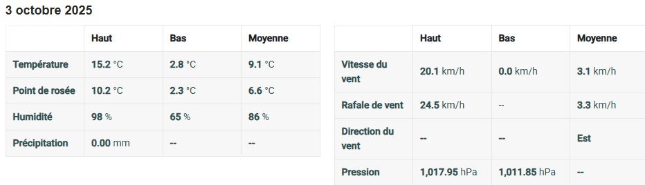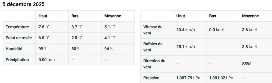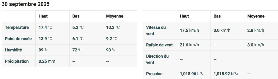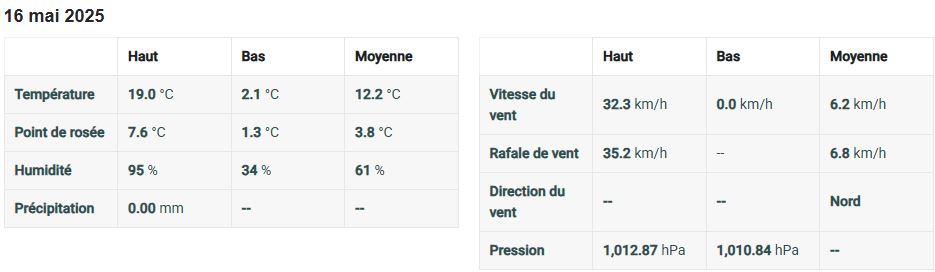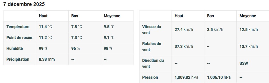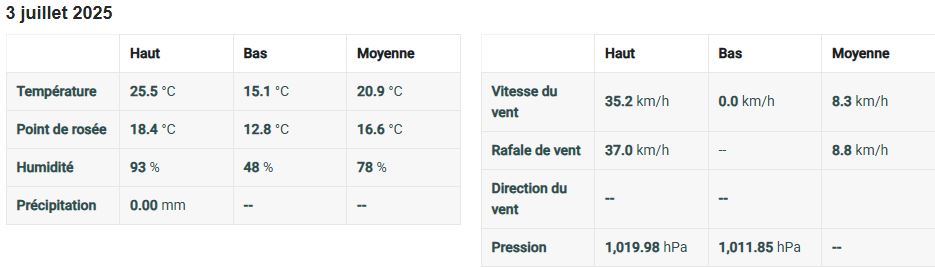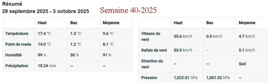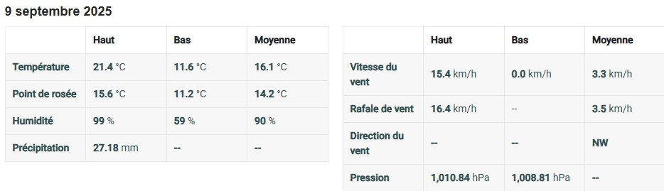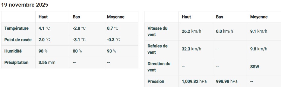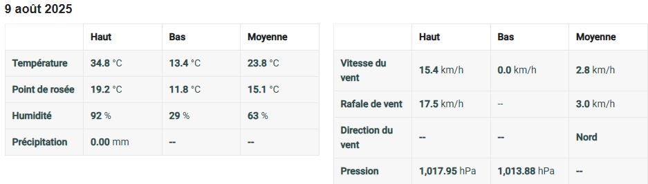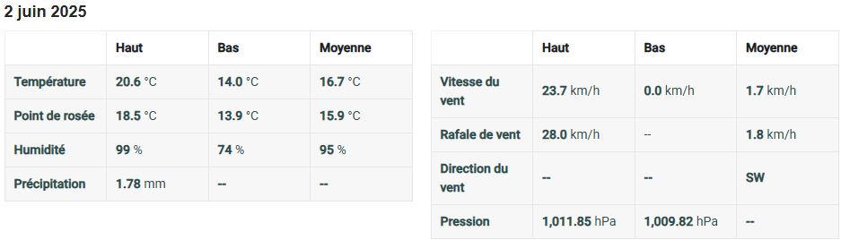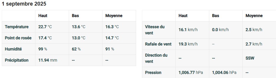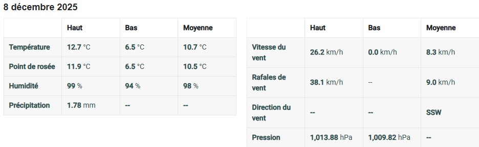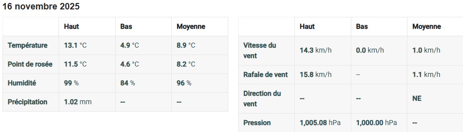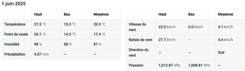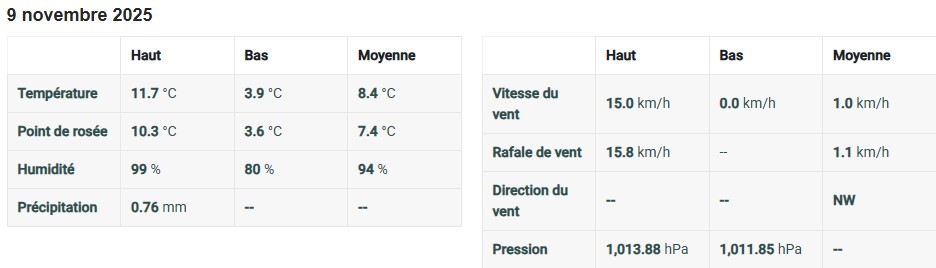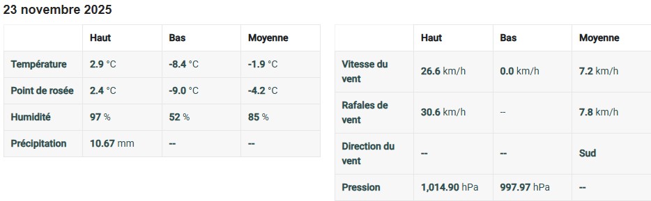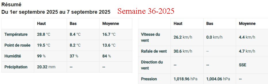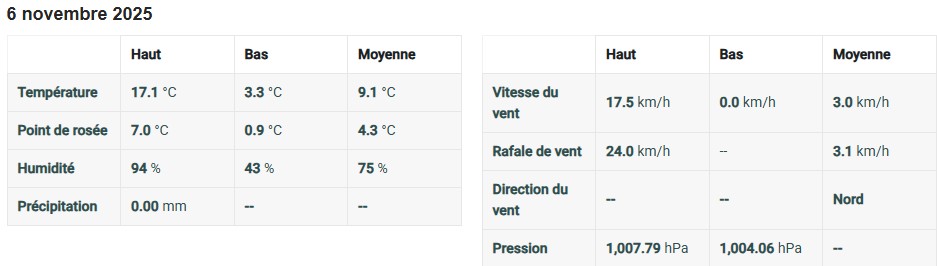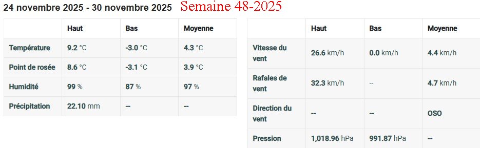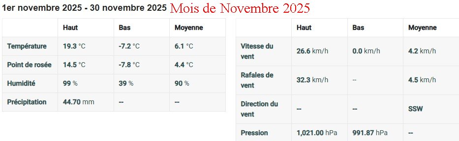 Le temps qu'il a fait à Uzemain en 2025 !!!!!