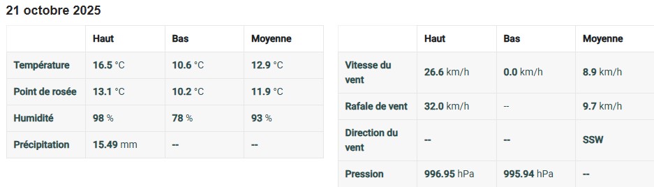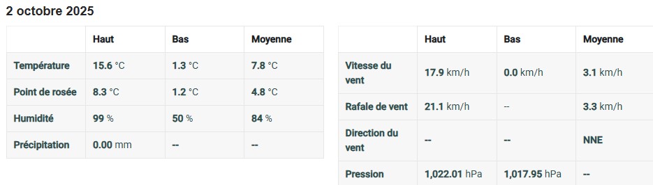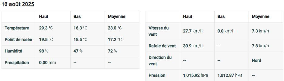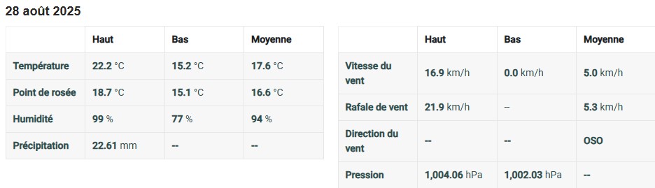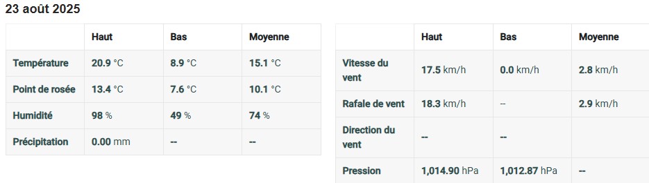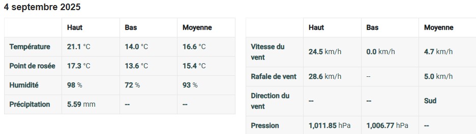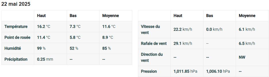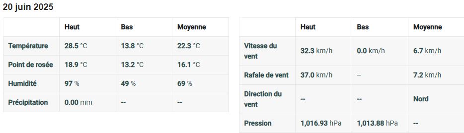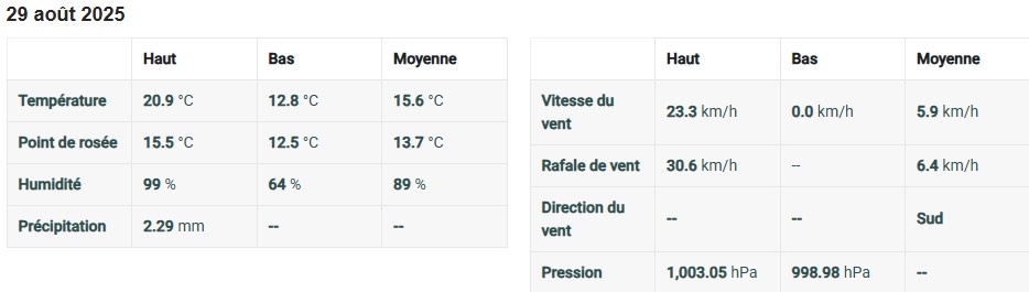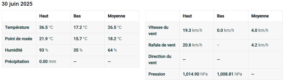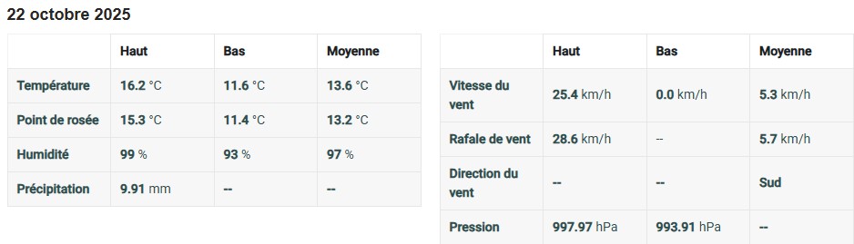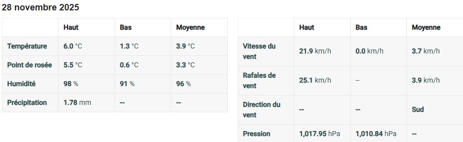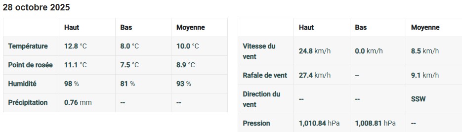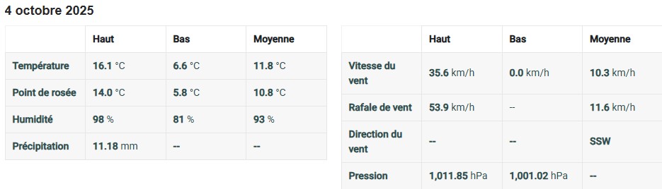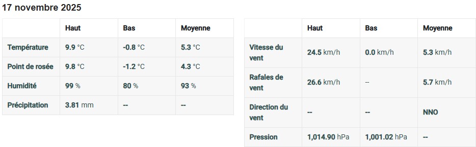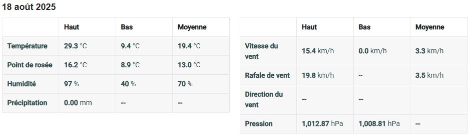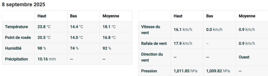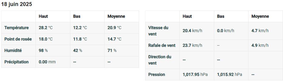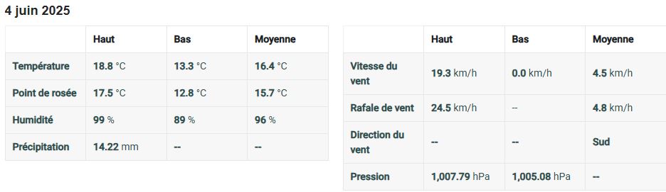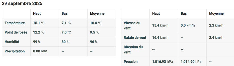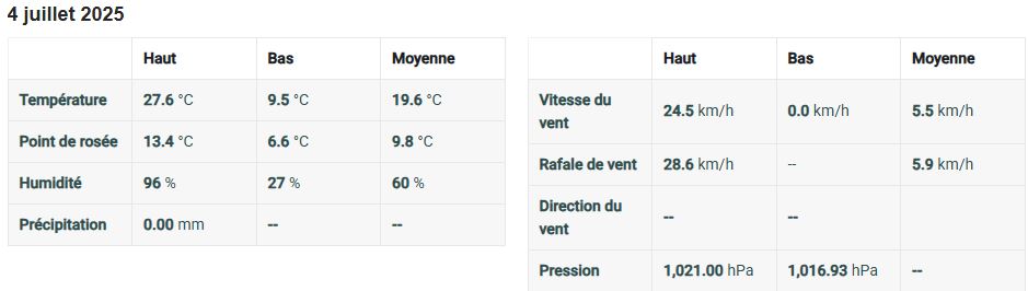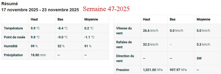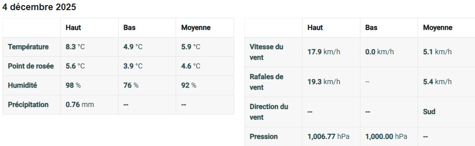 Le temps qu'il a fait à Uzemain en 2025 !!!!!