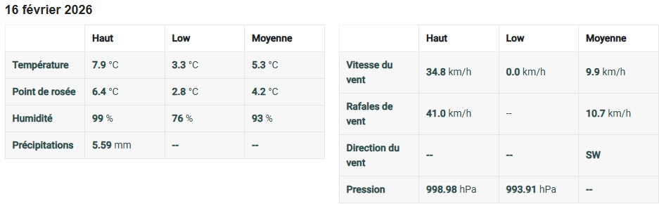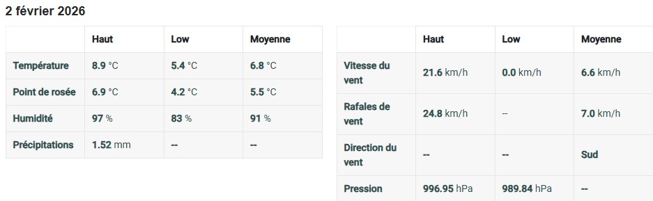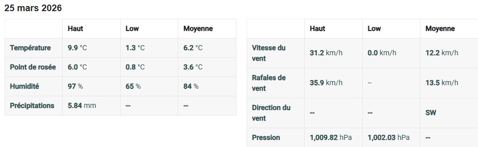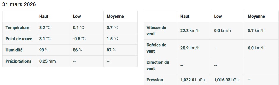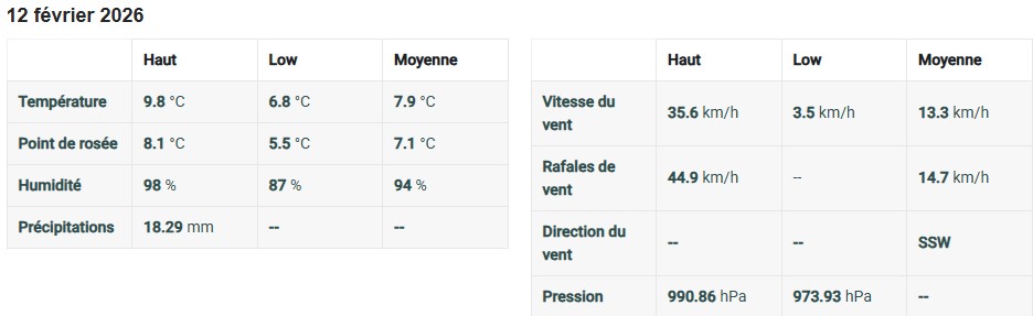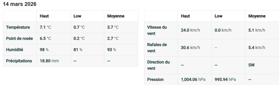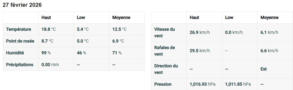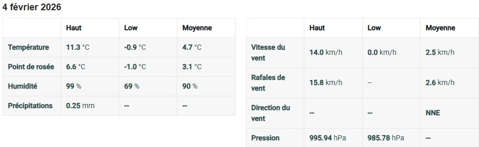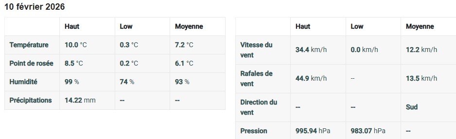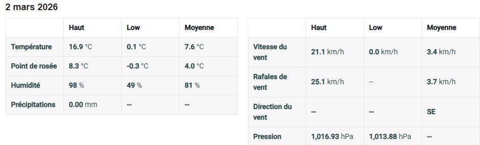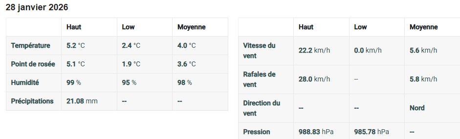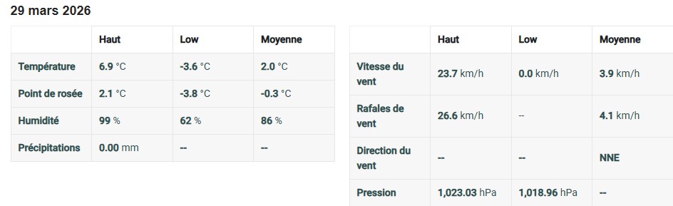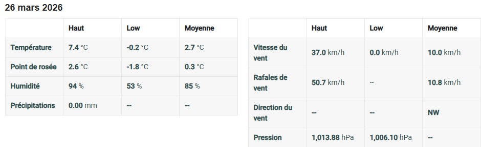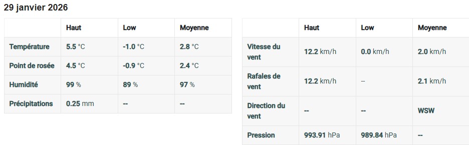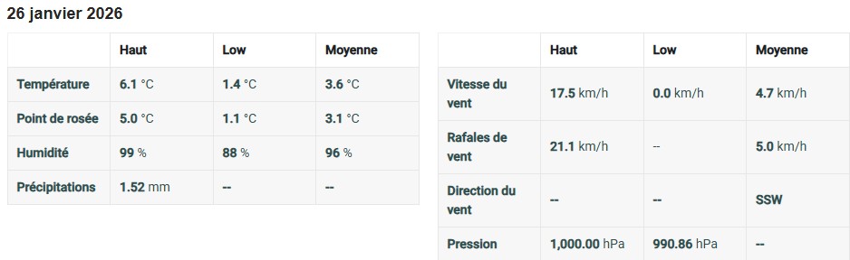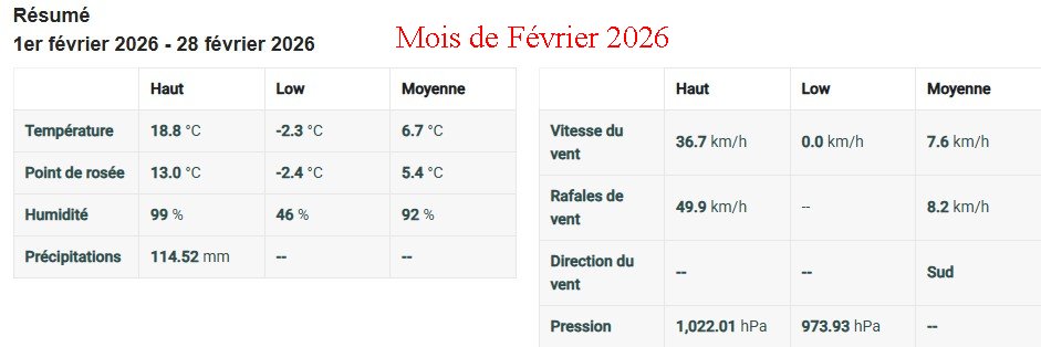 Le temps qu'il a fait à Uzemain en 2026 !!!!!